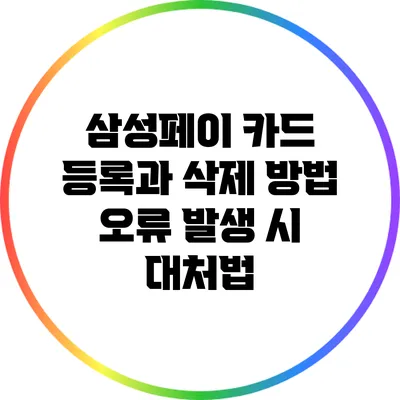 삼성페이는 현대 생활을 더욱 간편하게 만들어주는 필수 애플리케이션이에요. 카드를 등록하고 삭제하는 과정은 복잡하지 않지만, 가끔 오류가 발생할 수 있으니 사전에 대처법을 알아두면 좋답니다. 다양한 혜택과 더불어 안전하게 삼성페이를 이용해 보세요. 시간을 절약하고 더욱 스마트한 쇼핑을 즐길 수 있을 거예요!