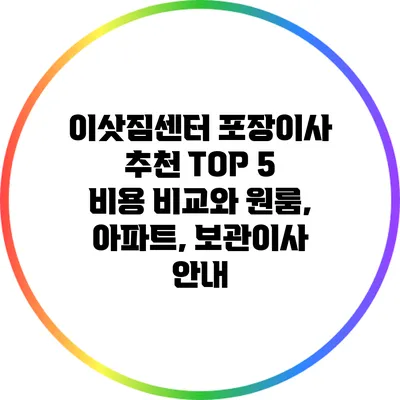 이사라는 방법을 겪는 모든 이들에게는 늘 고민이 따르죠. 특히 이삿짐센터를 선택하는 것은 이사 비용과 품질에 큰 영향을 미치는 중요한 결정이랍니다. 이 기사에서는 이삿짐센터 포장이사를 고려할 때 참고할 만한 TOP 5 업체를 추천드릴게요. 각 업체의 특징과 비용 비교를 통해 여러분의 이사 준비에 도움이 되길 바랍니다.